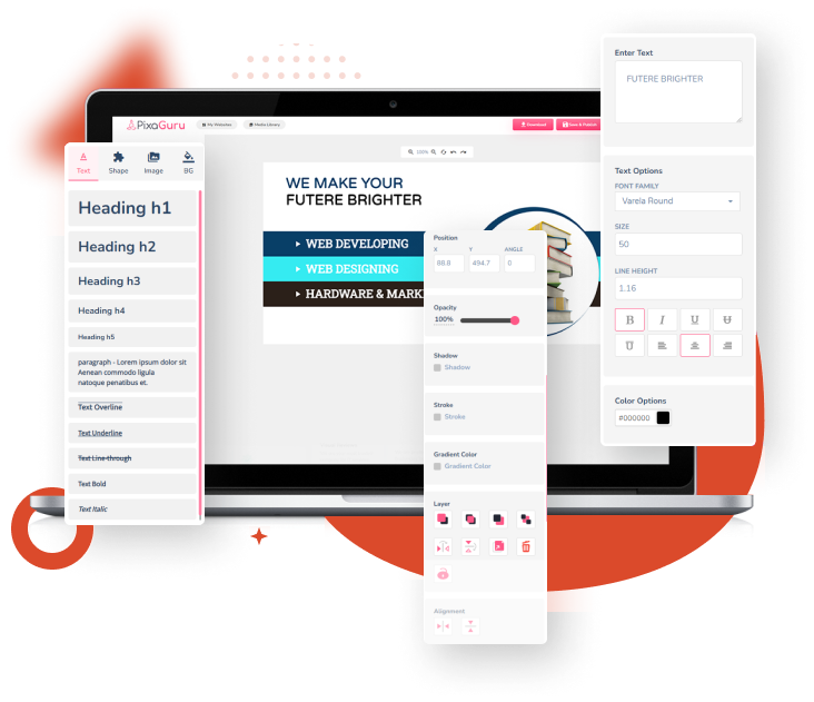 Big Creative Editor Offers A Variety Of Typography Options To Customize Headings, Paragraphs, And Other Elements With Font Style, Color, Size, And Line Height. You Can Also Add Gradients, Strokes, And Shadows To Make Your Text Stand Out And Captivate Readers. With Typography, You Can Create Engaging And Impactful Content.